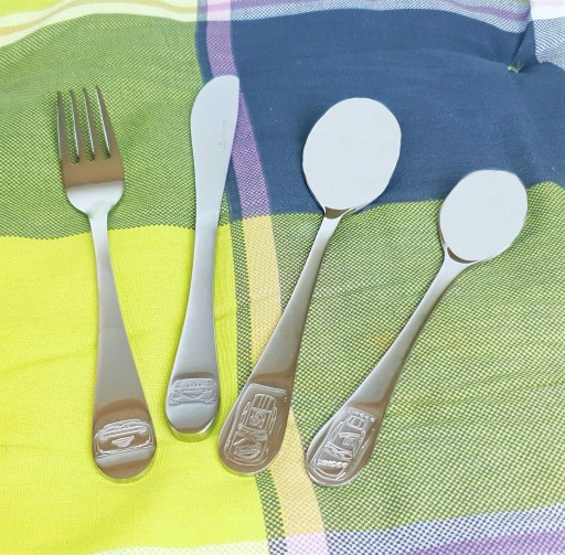 Набір дитячих столових приладів з високоякісної нержавіючої сталі, яка має відповідний профіль для ручки дитини, включає: