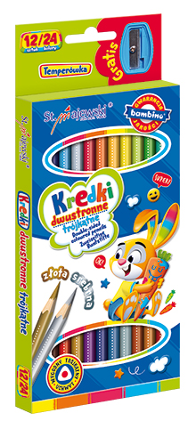 - Двосторонні трикутні шкільні олівці Bambino 12шт/24 кольори + точилка