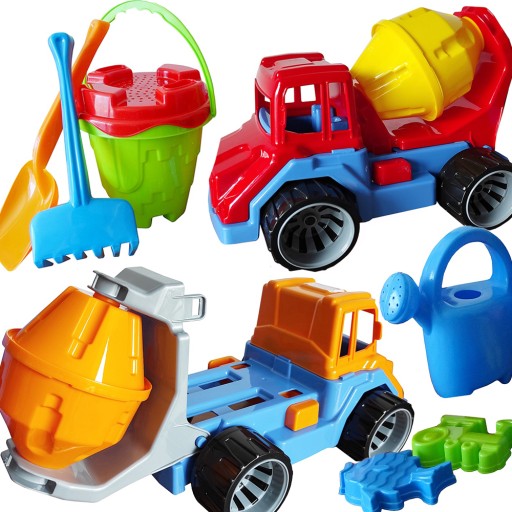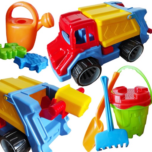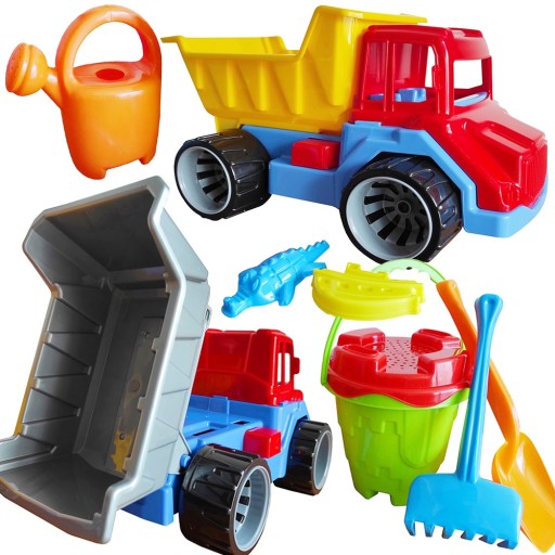 КОМПЛЕКТ: ДУЖЕ КРАСОВО ЗРОБЛЕНА САМОСВАЛІЗКА З ПІДНІМНИМ ВАНТАЖНИМ БОКСОМ + НАБІР ПІСКУ (ЗАМОК ВІДРА, ЛІЙКА, СІТОЧКА, СІТОЧКА, ЧЕРЕВИЦЯ, ГРАБЛІ, ФОРМИ) АБО ЗАМОК ВІДРА, ПУНШИ ДЛЯ МОРОЗИВА У ВАФЕЛІ, ОПАТКА) - ПОЛЬСЬКИЙ ПРОДУКТ! !! - ВИСОКА ЯКІСТЬ!!!