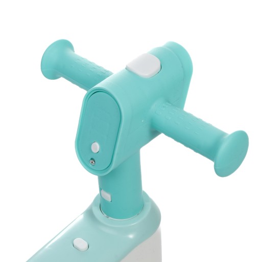 Синій м'ятний чотириколісний велосипед Lumina-03 оснащений багатьма цікавими функціями, які неодмінно сподобаються кожній дитині. Різнобарвна передня підсвітка зробить водіння ще приємнішим, а функція випуску мильних бульбашок неодмінно порадує кожну дитину. Крім того, велосипед має вбудований динамік, завдяки якому дитина під час катання зможе слухати музику, завантажену в пам'ять велосипеда. Чудове задоволення також доповнить гудок з приємним тонким звуковим сигналом.