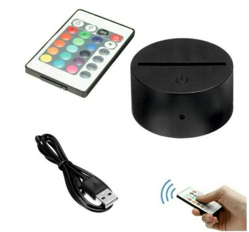 Світлодіодну підставку можна живити від батарейок 3xR6 (не входять в комплект) або від кабелю USB, підключивши, наприклад, до зарядного пристрою телефону. У комплект входить пульт дистанційного керування, який дозволяє змінювати кольори, вмикати/вимикати світло, приглушувати/збільшувати світло, активувати різні режими освітлення.