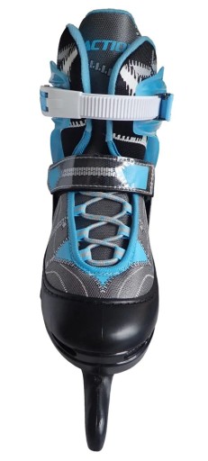 Легке регулювання взуття на чотири розміри 30-33 = 19-21 см. Довжина внутрішнього вкладиша при найменшому встановленому розмірі 30 становить 19 см. Ковзани виготовлені з пластикового скелета і внутрішнього текстильного черевика, який має м'яку підкладку для максимального комфорту. Є класична шнурівка, текстильна пряжка на липучці і пластикова пряжка для правильного застібання ніжок. Роликові ковзани мають водонепроникне покриття (просочення), яке перешкоджає проникненню вологи всередину взуття і водночас запобігає замерзанню ніг. Тим не менш, ми рекомендуємо періодично просочувати валики звичайними просочувальними засобами. Після цього черевик при необхідності можна потягнути. Потім важіль потрібно зафіксувати у вихідному положенні, щоб він був паралельний ковзанові. (Важіль можна повертати в обох напрямках, потрібно дотримуватися правила, що він повинен бути спрямований паралельно лезу ...).