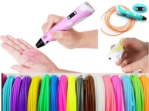- У набір входить 100 метрів кольорових наповнювачів, виготовлених зі спеціального матеріалу, який нагрівається всередині ручки і виходить із сопла в пластиковій формі, застигаючи після вилучення.