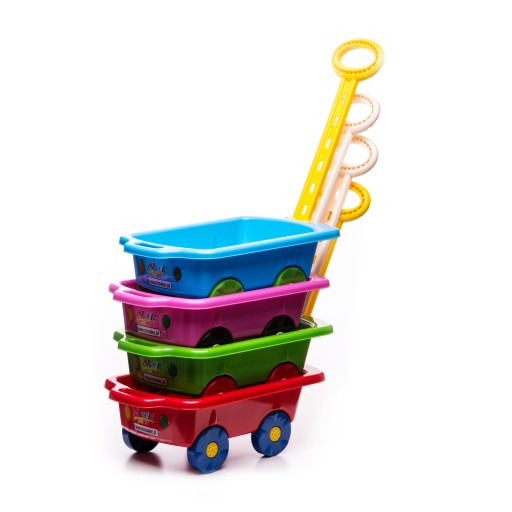 Виготовлена з високоякісного пластику яскравих кольорів. Він чудово підійде в саду, слугуючи для транспортування піску або води. Вдома можна перевозити, наприклад, іграшки.