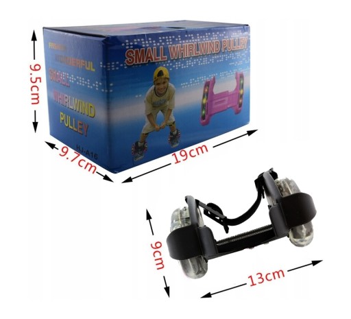 Просто відрегулюйте ковзани по ширині та прикріпіть їх за допомогою гумки зі спеціальною пряжкою! Бутони починають ефектно сяяти, як тільки ви їх розкручуєте. Додаткові джерела живлення не потрібні!