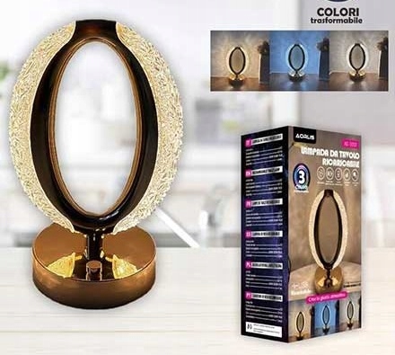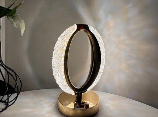 це розкішна кришталева настільна лампа, яка забезпечує три кольори світла з різними рівнями інтенсивності.