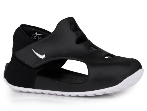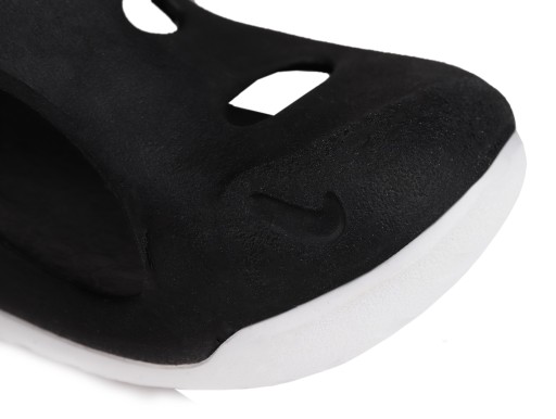 Зручна застібка-липучка дозволяє легко одягати і знімати. Вирізи в сандаліях забезпечують достатню вентиляцію. Гумова підошва дає відчуття стабільності та амортизації. Збоку на липучці білий логотип Nike.