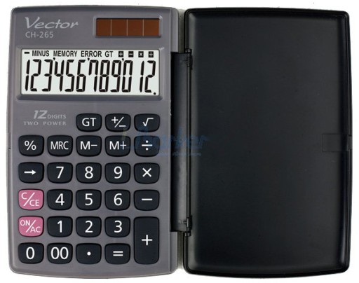 Кишеньковий, кишеньковий, настільний, 12-розрядний, легко читається калькулятор Vector CH-265 із захисною кришкою - пам'ять, відсотки, радикали, загальна сума, клавіша зміни знака, Backspace