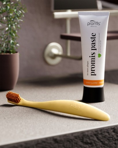 Зубна паста PROMIS без фтору 75 мл на 99% складається з натуральних інгредієнтів, з яких 21% інгредієнтів походить з органічного землеробства. Натуральні інгредієнти зубних паст створені для захисту наших зубів і ясен від нальоту. Не містить шкідливих штучних інгредієнтів. Виготовляється без SLS, без триклозану, без парабенів, без барвників і без парфумів. Завдяки ефективній формулі наша зубна паста забезпечує економне використання, що забезпечує довший термін служби продукту та кращу турботу про навколишнє середовище. Досить лише невеликої кількості пасти, розміром з горошину, щоб ефективно очистити зуби від нальоту, захистити від карієсу та подбати про здоров’я порожнини рота.