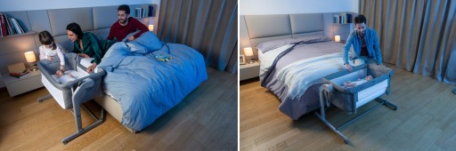 Однією кнопкою ми можемо опустити стінку воронки. Завдяки цьому ми маємо більше місця, щоб розтягнути дитину. Це може бути вашим способом безпечно покласти дитину в ліжечко, не розбудивши її. стінка зазвичай залишається опущеною, коли використовується Chicco Next 2 Me Evo у формі розкладного ліжка - тоді дитина знаходиться в межах досяжності, тому, коли він починає прокидатися, ми можемо лягти в своє ліжко і в той же час загасити його . Ваші дотики і близькість допоможуть його заспокоїти.