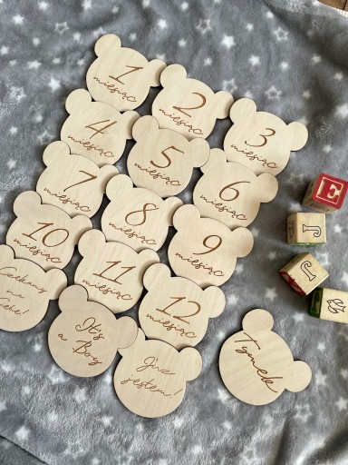 Тому варто фіксувати кожен місяць життя вашого малюка. У нас є ідеальна ідея у формідерев'яні таблички для фотографій у формі ведмедика. Чудово підходить для створення однорічної історії про дорослішання вашої дитини тощо. Ви можете почати фотосесію з живота, поки малюк не набуде нових навичок, навіть коли він стане більшим.