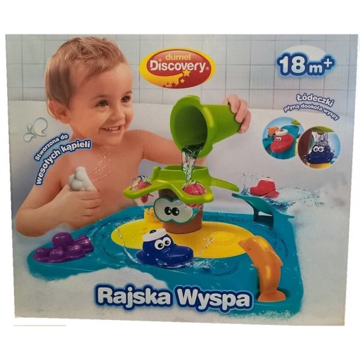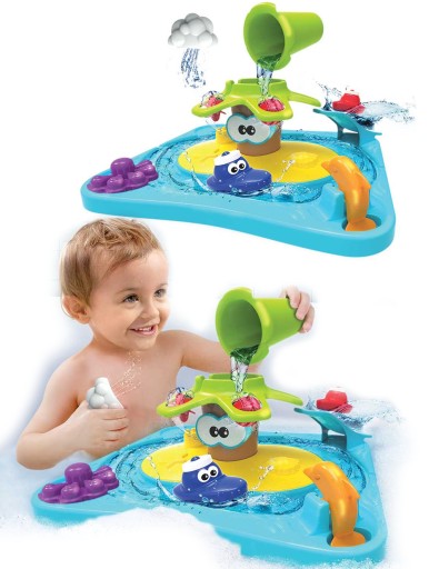 Цей барвистий острів сповнений сюрпризів: тут рухомий восьминіг, дельфін, 2 колоди, гірка та м’яка хмара з дірками, тож коли ви наповните її водою, вона покропить острів справжнім дощем!
