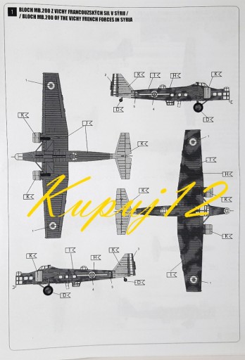 У комплект входить пластикова модель для збіркиБомбардувальник BLOCH MB.200в масштабі 1:72
