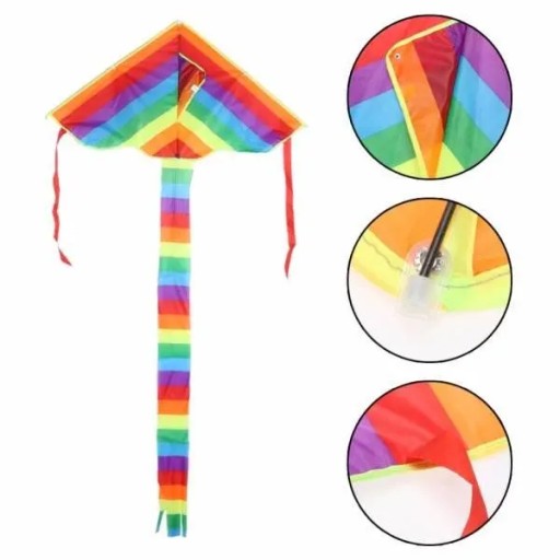 Гарний різнокольоровий повітряний змій у формі трикутника. Виготовлений з нейлону.