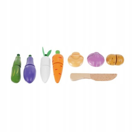 - ДУМКА - овочі з'єднані за допомогою липучки, тому дитина може різати їх ножем, що входить в набір. Коли ви закінчите грати, ви можете підключити їх знову.