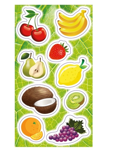Основні мотиви – смачні фрукти. Це не тільки чудовий подарунок для дітей, але й чудовий навчальний інструмент.Завдяки наклейкам ваша дитина може: