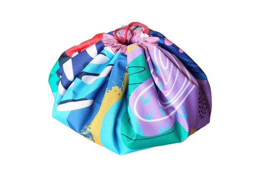 Коли ви перетягуєте килимок шнурком за допомогою зручного стопора, створюється сумка, яку легко носити, що дозволяє брати її куди завгодно дітям, наприклад, на канікули, у парк, на майданчик або до друзів. Водонепроникний матеріал дозволяє використовувати його, наприклад, на траві або піску.