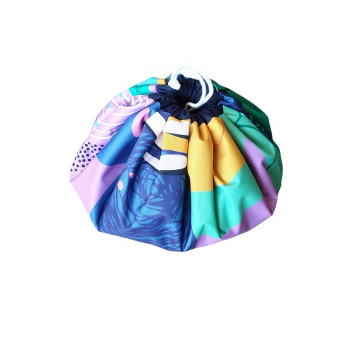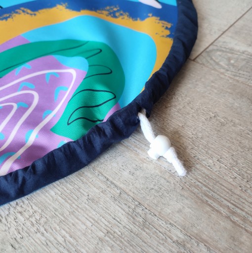 Коли ви перетягуєте килимок шнурком за допомогою зручного стопора, створюється сумка, яку легко носити, що дозволяє брати її куди завгодно дітям, наприклад, на канікули, у парк, на майданчик або до друзів. Водонепроникний матеріал дозволяє використовувати його, наприклад, на траві або піску.