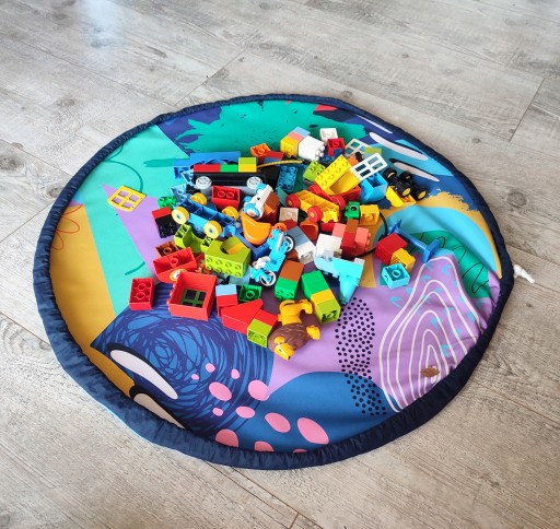 Цей надзвичайно практичний килимок для іграшок і кубиків дозволяє швидко збирати і зберігати іграшки, не збираючи їх вручну, що економить час і спонукає дітей прибирати за собою. Завдяки цьому виробу дітям буде легше підтримувати порядок у своїй кімнаті, і при цьому вони матимуть легкий доступ до улюблених іграшок.