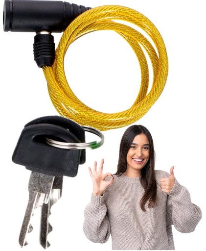 Загальна довжина застібки становить 90 см, тому ви можете легко прикріпити її до постійних елементів інфраструктури, наприклад, поручнів або кріплення для велосипеда. Діаметр троса становить 6 мм, тому забезпечує хороший захист від крадіжки. Закривати і відкривати замок дуже просто, це відбувається шляхом відстібання або застібання замка за допомогою ключа.