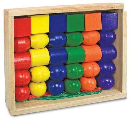Набір великих намистин ідеально підходить для веселого нанизування та тренування спритності рук. Це не тільки хороша і ефективна розвага, але і тренування і розвиток терпіння у дітей. Все це виготовлено з високоякісної лакованої деревини та упаковано в дерев'яний ящик, що полегшує дотримання порядку.