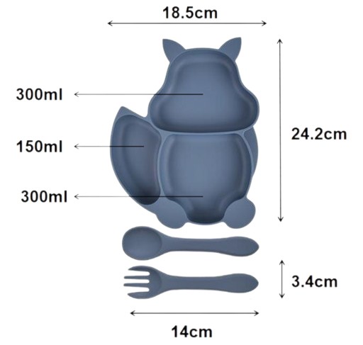 НАБІР СИЛІКОНОВОГО ПОСУДУ ТА СТОЛОВИХ ПРИБОРОВ ДІТЯЧИЙ З НАЛЮЧНИКОМ