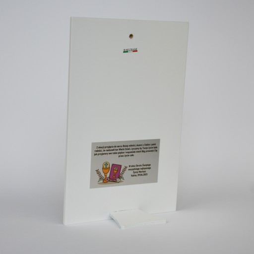 Персоналізація стандартно не приклеюється до зображення. Табличка з присвятою приклеєна двостороннім скотчем, завдяки чому ви можете індивідуально вирішити, де її розмістити.