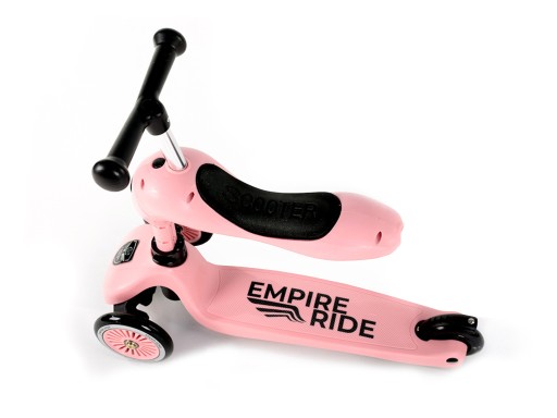 Самокат Empire Ride для найменших має форму збалансованого райдера зі зручним сидінням. Сидіння дуже ергономічно спрофільоване, щоб дитина мала максимальний комфорт під час відштовхування. Вершники - ідеальний вступ до активних пригод, які підтримуватимуть психомоторний розвиток дитини протягом багатьох років. Є можливість заблокувати кермо в їзді, це варіант для найменших дітей, щоб забезпечити кращий баланс.