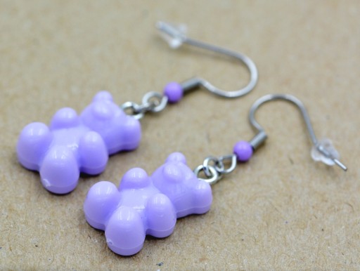 КОМПЛЕКТ Сережки і підвіска ВЕДМЕДКИ ТЕДДІ як лосі Харібо - фіолетові