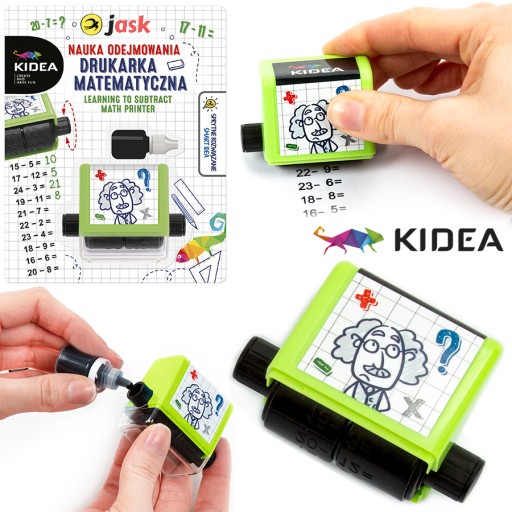 Математичний принтер Kidea для навчання відніманню. Цей унікальний роликовий штамп дозволяє створювати до 100 різних комбінацій математичних операцій - просто змініть налаштування числа за допомогою циферблата. Завдяки штампу навчання відніманню стає цікавим. Це також творчий навчальний посібник для батьків і вчителів, яким не потрібно турбуватися про створення комбінацій математичних операцій. Математичний принтер ідеально підходить для повторення матеріалу перед контрольною чи вікториною!