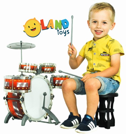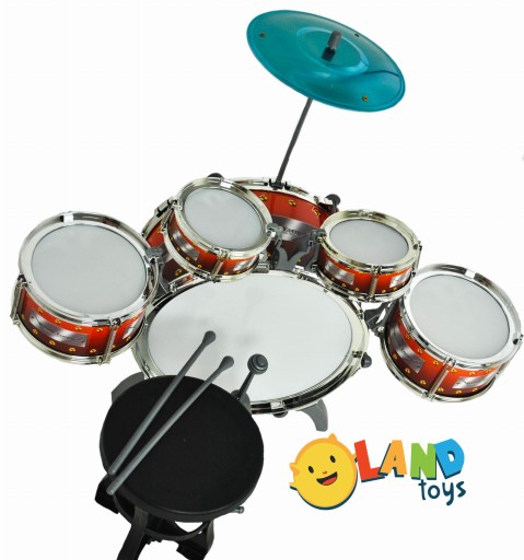 Барабани - іграшка від LandToys - це великий набір, що складається з декількох елементів. Він заснований на барабанах: одна велика котушка, дві середні і дві маленькі. Також тут є тарілка, необхідна для отримання звуків на барабанах. Крім того, в комплекті з інструментом йдуть дві спеціальні палички.