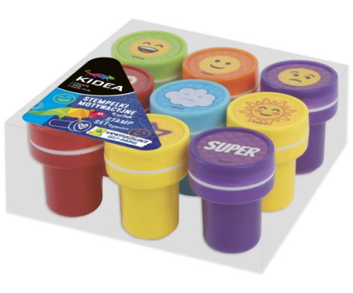 Штампики для дітей з мотивуючими смайликами від Kidea. У наборі 9 штампів різних кольорів: помаранчевий, червоний, зелений, синій і фіолетовий. Марки допоможуть вам висловити такі емоції, як радість, смуток, нудьга чи любов. Також вони чудово підійдуть для оцінювання роботи дітей та ведення дошки мотивації та щоденника настрою. Штампи самозафарбовуються, а це означає, що вам не потрібно занурювати їх у чорнильну подушечку!