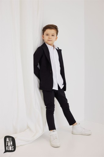 Чорна куртка для хлопчика. Застібається на одну кнопку. Спереду імітація кишень. Зручний крій і матеріал, в якому кожен хлопчик почуватиметься комфортно.