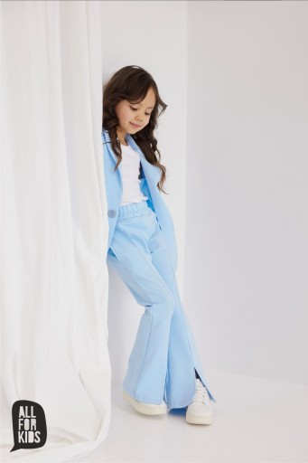 Кофта для дівчинки синього кольору. Застібається на одну кнопку. Спереду імітація кишень Стильна куртка з бавовняної тканини з еластаном.