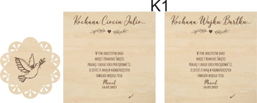 Табличка для хресних батьків, яка ховає красиву подяку під рухомим елементом із декоративним мотивом Першого Причастя.
