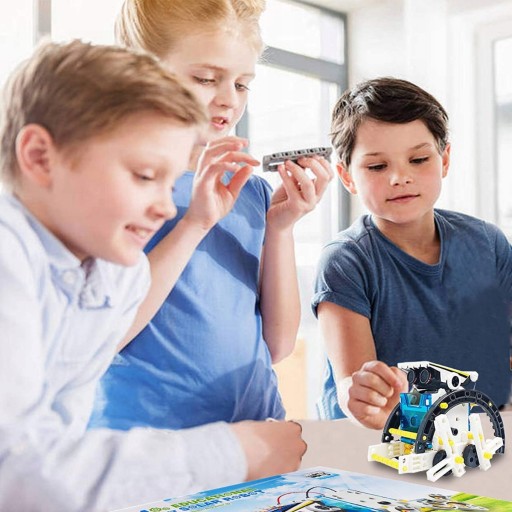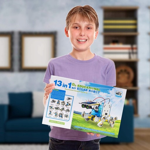 Ви можете створити одного з багатьох роботів, які пересуваються по суші та воді. Сонячний набір - унікальний набір, з якого можна збирати різні іграшки. Вам не обов'язково обмежуватися однією моделлю, набір можна розібрати і зібрати в будь-який момент, що робить його джерелом нескінченного задоволення. Робот живиться від сонячної батареї, тож це доречний подарунок, навіть якщо ви дбаєте про навколишнє середовище.
