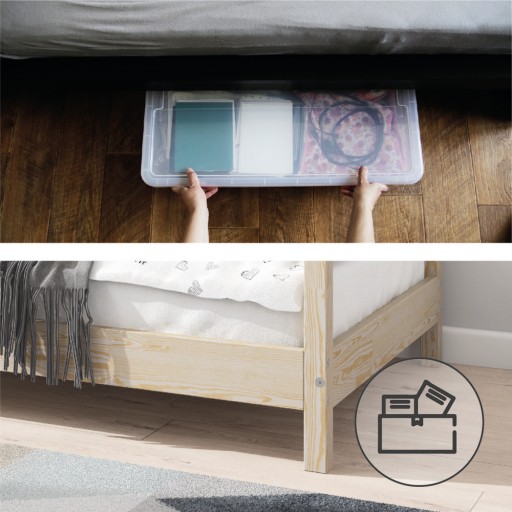 ПРАКТИЧНІ РІШЕННЯ - відкритий простір під ногами сприятиме належній циркуляції повітря під матрацом і полегшить прибирання під меблями. Ви також можете вільно використовувати його як додаткове місце для зберігання.