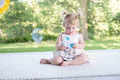 У набір бульбашок входять Dimpl Sunshine і Dimpl Cloud. Жовте кругле сонечко має всередині двостороннє безпечне дзеркало, яке захопить і стимулюватиме малюка.
