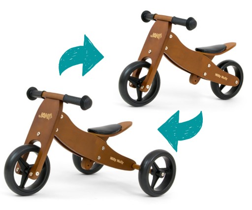 Неоціненною перевагою є можливість переробити його з триколісного велосипеда на двоколісний бігунок. Завдяки цьому ваша дитина зможе довше насолоджуватися цим незвичайним велосипедом, який буде рости разом з ним. М'які неслизькі ручки з чохлами захистять ручки дитини, а сидіння, що регулюється по висоті, дозволить відрегулювати відповідну висоту під зріст дитини. Також є обмежувач повороту, щоб дитина не крутила кермо, унеможливлюючи їзду.