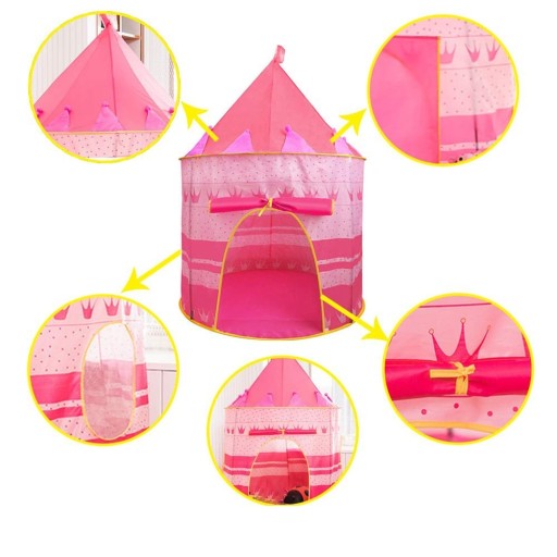 Палац для дітейідеально підходить для дому, саду та пляжу.Матеріал, з якого виготовлений дитячий замокміцний і стійкий до невеликої кількості води, а також легко чиститься.