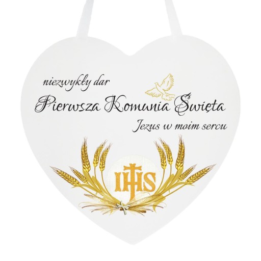 Дерев'яна біла підвіска у формі серця з написом«Надзвичайний дар Перше Святе Причастя, Ісус у моєму серці»Підвіска чудово підійде як сувенір на Перше Святе Причастя.