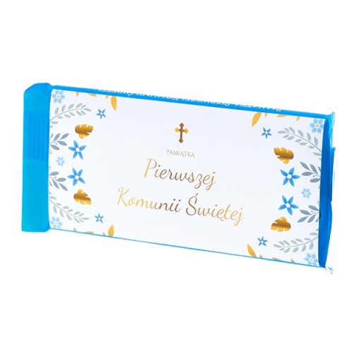 Молочний шоколад для Першого Святого Причастя. Упаковка прикрашена вишуканим ніжним принтом. Цікаве доповнення до подарунка до Причастя.