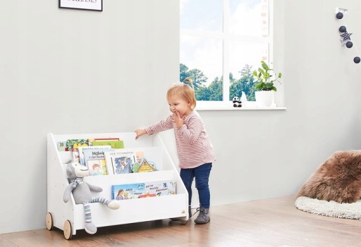 Красиву дитячу книжкову полицю можна легко переміщати завдяки прогумованим коліщаткам, не дряпаючи підлогу. Радість прибирання! Завдяки поступовому розташуванню 3 відділень усі книги добре відсортовані та під рукою. Діти можуть зберігати свої секретні скарби в прихованому відділенні на задній частині. Завдяки простому білому лаку поличка ідеально впишеться в будь-яку кімнату, не тільки в дитячу. Чудова ідея подарунка на день народження, хрестини чи Різдво.