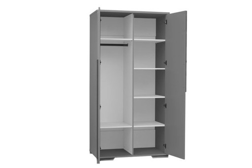 Містка 2-дверна шафа-купе з якісною системою безшумного закривання. Вертикальна перегородка всередині, а також різні можливості облаштування внутрішньої частини шафи - наприклад, 4 полиці з одного боку і 2 полиці і барна стійка збоку.
