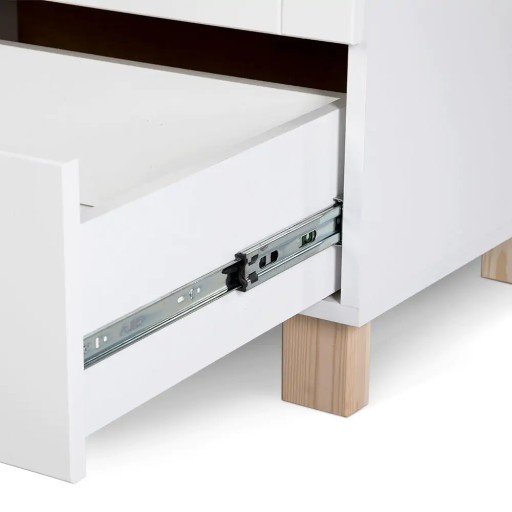 - Комод має якісні напрямні на шарикопідшипниках з функцією «тихе закривання». Вони покращують комфорт використання та зміцнюють весь ящик.