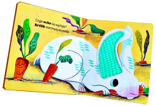 - Чудова книга для допитливих малюків. Завдяки опуклим формам з різною фактурою дитина може гладити тварин на лузі. Він обов'язково буде радий перевірити, як на дотик відчуваються КОРОВ'ЯЧІ БИРКИ або ЗАЯЧІ ВУШКА