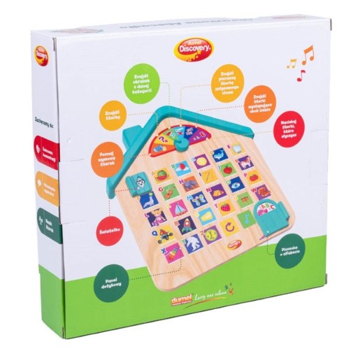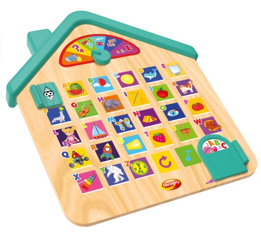 Дерев'яний будиночок, який доступно познайомить дітей з абеткою, розважаючись і навчаючись! Іграшка оснащена 6 різними режимами, за допомогою яких дитина буде відкривати літери, вивчати їх вимову, положення в алфавіті та вивчати приклади їх використання. Кожна літера відповідає зображенню різного кольору, що полегшує зв’язування літери зі словом, яке на неї починається. Функція повтору дозволить відтворити останній звук ще раз, а кнопка ноти розважить вас веселими мелодіями. Дверцята, що відкриваються, приховують кнопку, яка активує пісню алфавіту.