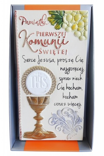 Пам’ятна табличка з нагоди Першого Святого Причастя з написом «Серце Ісуса, я прошу тебе найгарячіших речей, дозволь мені любити тебе, я люблю тебе все більше і більше». Табличку можна розмістити або повісити.