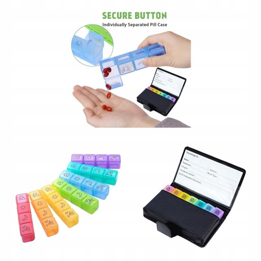 Органайзер для таблеток 4 рази на день: Ця коробка для таблеток на 7 днів дає змогу організувати ваші ліки вранці, вдень, увечері та перед сном. Кольорове кодування, прозорі кришки, які легко відкриваються, дозволяють легко ще раз перевірити, що ви приймали організовано та правильно приймав таблетки.