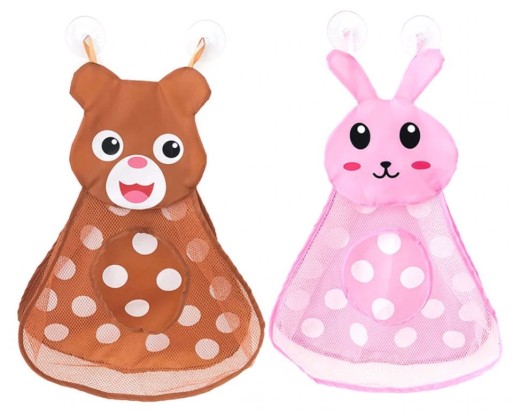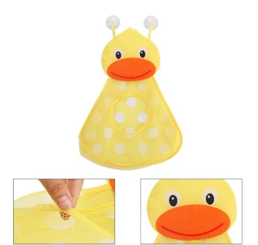 Сумка вміщує багато іграшок і кріпиться до стіни над ванною за допомогою присосок.